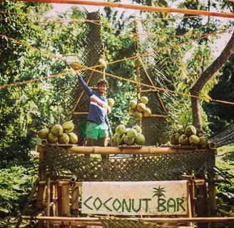 Mach dein Event zu einem Highlight! Mit unserer mobilen Kokosnussbar bringen wir das erfrischende Tropen-Feeling direkt zu deiner Veranstaltung - ob Festival, Messe oder Party. Frische junge Kokosnüsse, live geöffnet, serviert mit authentischem Charme und einer Prise Abenteuer – natürlich präsentiert an unserer Bar aus regionalem Bambus. Ein Genuss für Auge, Gaumen und Körper!